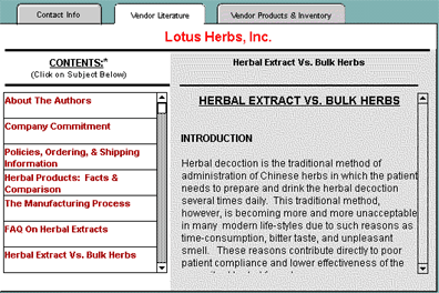get further information on that vendor. Using Lotus Herbs as an example,