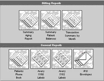 Billing database. The reports window looks like this: For any of the above reports, simply