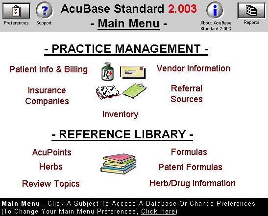 Menu is your starting place from which you may access all of AcuBase's