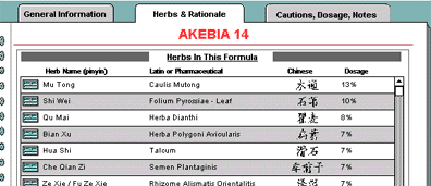 Like the Standard Formulas database, the Herbs & Rationale tab will