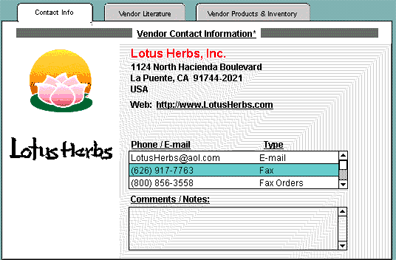 get further information on that vendor. Using Lotus Herbs as an example,