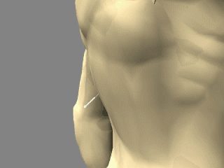 Below the spinous process of the seventh thoracic vertebra, approximately level with the inferior angle of the scapula.